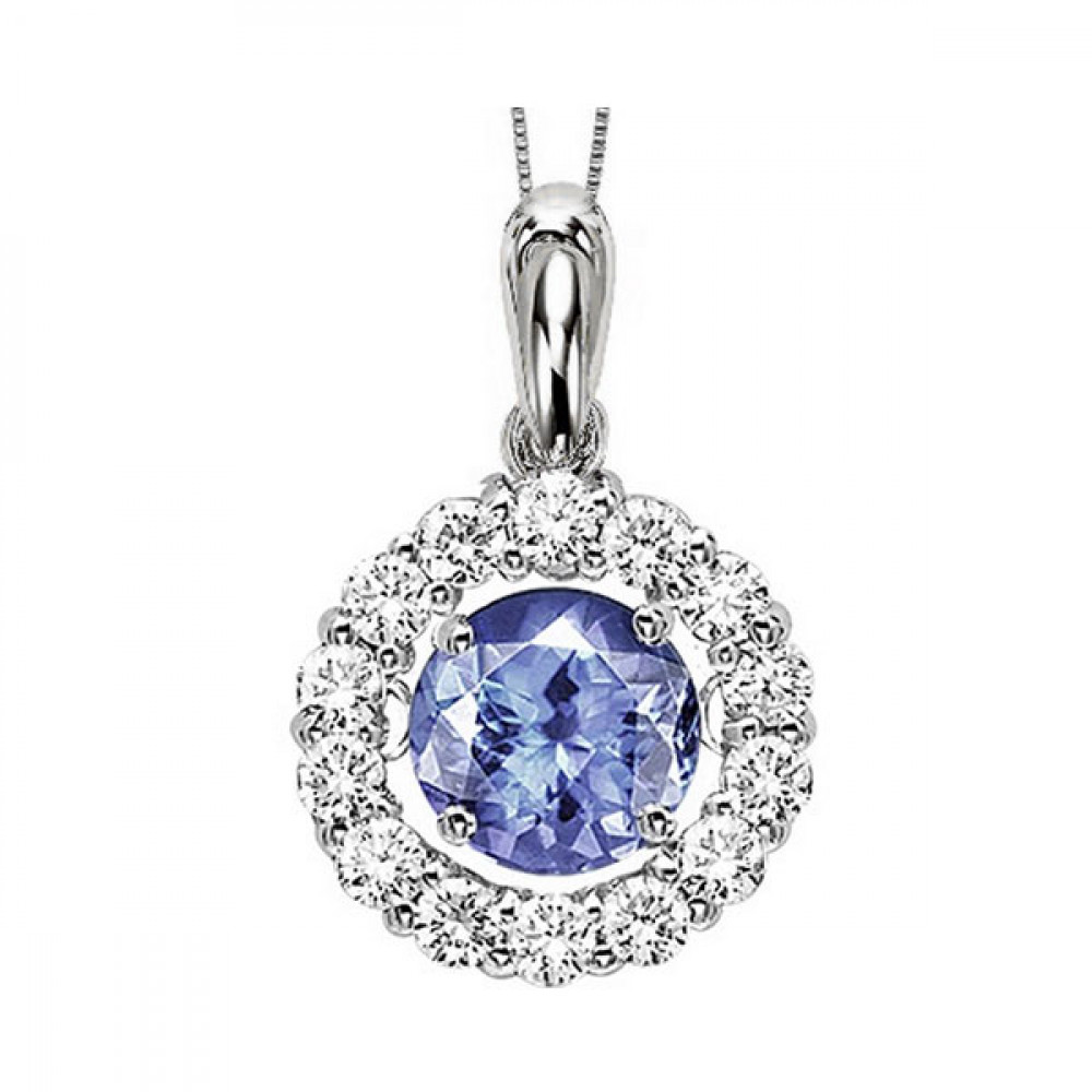 14Kt White Gold Diamond 1/4Ctw & Tanzanite 1Ctw Pendant